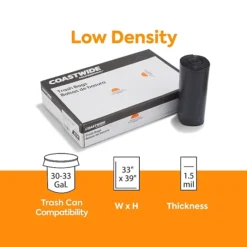 Coastwide Professional™ 30-33 Gal. Trash Bags, Low Density, 0.6 Mil, Black, 250/Carton (CW17966)