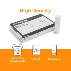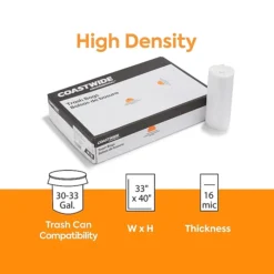 Coastwide Professional™ 30-33 Gal. Trash Bags, Low Density, 0.74 Mil, White, 150/Carton (CW18185-CC)