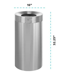 The Alpine Industries 27 Gal. Stainless steel commercial indoor trash can features both heavy-duty material and aesthetic appeal. Able to hold up to 27 Gal. in waste capacity. This is an essential item to have for high traffic facility management. Designed with an open top for quick and easy trash disposal on-the-go. The top conceals trash bags giving it a neat and professional appearance. Easy to lift off lid for simple baggage removal and replacement. Constructed of stainless steel, it is easy to clean and antimicrobial. Made for indoor use only.