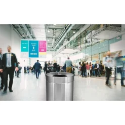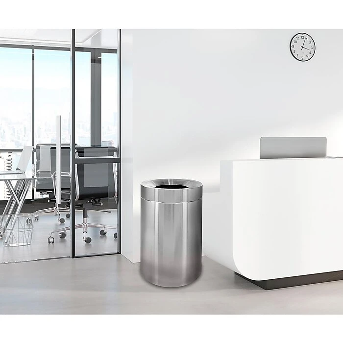 The Alpine Industries 50 Gal. Stainless steel commercial indoor trash can features both heavy-duty material and aesthetic appeal. Able to hold up to 50 Gal. in waste capacity. This is an essential item to have for high traffic facility management. Designed with an open top for quick and easy trash disposal on-the-go. The top conceals trash bags giving it a neat and professional appearance. Easy to lift off lid for simple baggage removal and replacement. Constructed of stainless steel, it is easy to clean and antimicrobial. Made for indoor use only.