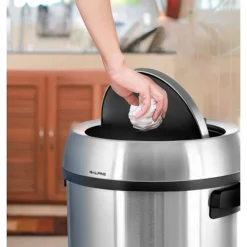 The Alpine Industries Stainless Steel Trash can with Swing Lid has a 17 Gal. capacity, making it a desirable waste management choice for areas with small to moderate scores of traffic. It can conveniently hold more for less, making for less frequent bag changes. The trash can is durably constructed using brushed stainless steel to provide long-term strength and use for years to come. The sturdy material holds up extremely well against everyday wear and tear and is smudge-resistant so that it always looks clean and fresh. The Alpine Industries 17 Gal. trash can is ideal for any high-traffic public or commercial area, including restaurants, hospitals, healthcare facilities, schools, food service facilities, restrooms and more. The large capacity conveniently holds more garbage so more time can elapse between bag changes. Designed with a sleek, modern style, the Alpine will easily fit into and brighten any interior design. Its furnished in a brushed silver finish with black handles and rings, along with a non-skid base that protects the floor while keeping the can sturdy. Also featuring convenient side handles allow for easy transport from place to place.