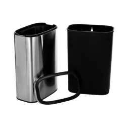 The Alpine Industries Stainless Steel Trash can with Swing Lid has a 17 Gal. capacity, making it a desirable waste management choice for areas with small to moderate scores of traffic. It can conveniently hold more for less, making for less frequent bag changes. The trash can is durably constructed using brushed stainless steel to provide long-term strength and use for years to come. The sturdy material holds up extremely well against everyday wear and tear and is smudge-resistant so that it always looks clean and fresh. The Alpine Industries 17 Gal. trash can is ideal for any high-traffic public or commercial area, including restaurants, hospitals, healthcare facilities, schools, food service facilities, restrooms and more. The large capacity conveniently holds more garbage so more time can elapse between bag changes. Designed with a sleek, modern style, the Alpine will easily fit into and brighten any interior design. Its furnished in a brushed silver finish with black handles and rings, along with a non-skid base that protects the floor while keeping the can sturdy. Also featuring convenient side handles allow for easy transport from place to place.