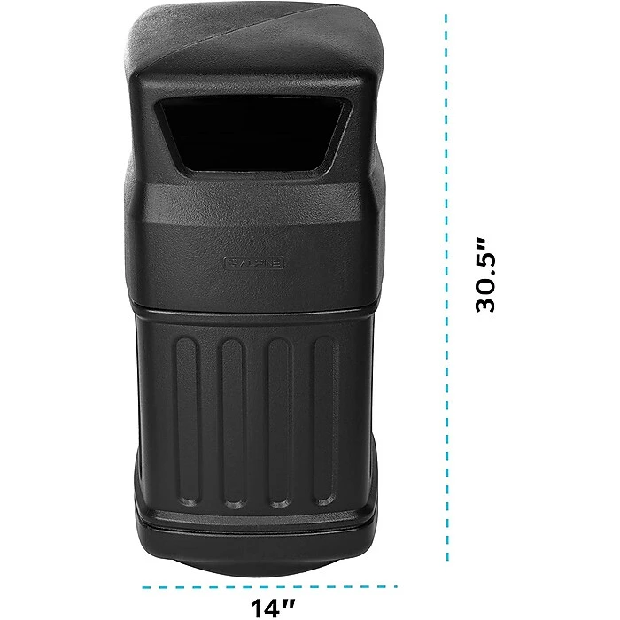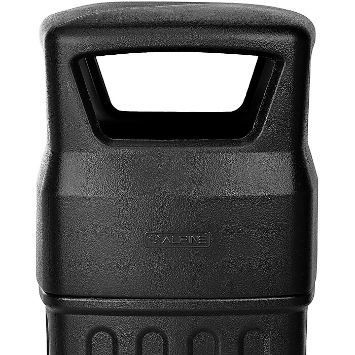 The Alpine Industries 16 Gal. Black Indoor Outdoor Open Dome Top Commercial Trash Can with Dome Lid will leave a positive effect on the aesthetic and sanitation of any indoor or outdoor environment. Available with dome lid, the Alpine Industries Open Dome Top Commercial Trash Can is expertly molded from high density polyethylene, making this a 16-Gallon waste container that will perform extraordinarily well in both indoor and outdoor conditions. The covered dome features four 9 inch W x 5 inch H openings that allow you to easily discard waste without touching the lid, reducing the spread of germs. The medium capacity waste bin is essential for offices, cafes, and more. The 30.5 inch tall by 14 inch wide compact trash receptacle is designed with a round base to ensure balance and stability. Square trash bags can be easily put in and held on with the dome shaped open lid.