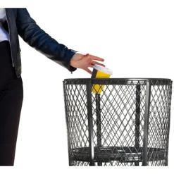 The Alpine 48 Gallon Mesh Outdoor Trash Can is a practical investment for parks, restaurants, office buildings, and so much more. It is constructed of stainless steel with a powder coating ensuring its rust resistance, stability, and ability to be outside all year long. Located on the trash can are vertical ribs that add reinforcement. The mesh material allows maintenance workers to see when it needs to be emptied, and with a weight of 28 lbs. It is manageable for anyone to maneuver. Each trash can’s base has pre-drilled holes so that it can efficiently ventilate and drain moisture quickly. The Alpine Mesh Outdoor Trash Can comes fully assembled and can hold 48 gallons of waste, requiring less frequent attention.