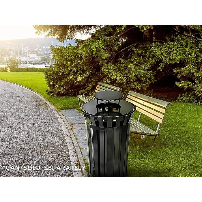 Alpine Industries Black Outdoor Trash 38 Gallon Steel Rain Bonnet Lid is a fully welded and durable receptacle with a galvanized steel body that is reinforced with circular bands and rolled edges. Our Rain Bonnet Lid prevents rain and/or snow from entering the container. Fully welded and durable bonnet lid that fits 38 gallon trash bins. The rain bonnet lid endures extreme climate conditions for long lasting use. Constructed of flat bar steel and polyester powder coated finish to deter graffiti and vandalism. The rain cap lid prevents rain or snow from entering container while covering the trash can to prevent waste from falling out or blowing out due to extreme weather conditions.