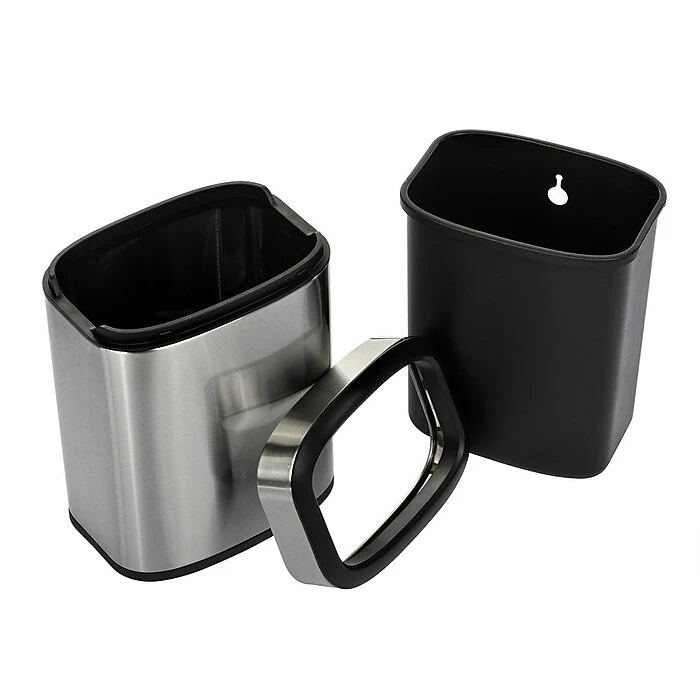 Alpine Industries 1.6 Gal. Stainless Steel Rectangular Liner Open Top Trash Can is not just a waste bin, it’s also an additional source of style and decor that’s suitable in any environment. Featuring a large diameter opening for waste disposal access, this stainless steel trashcan will keep your space clean of rubbish and make it simple for trash disposal on the go. It includes a rigid black plastic liner to easily remove trash and dump into trash bags or large disposals. Constructed of durable and antimicrobial stainless steel for long-lasting use.