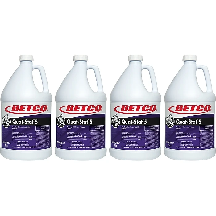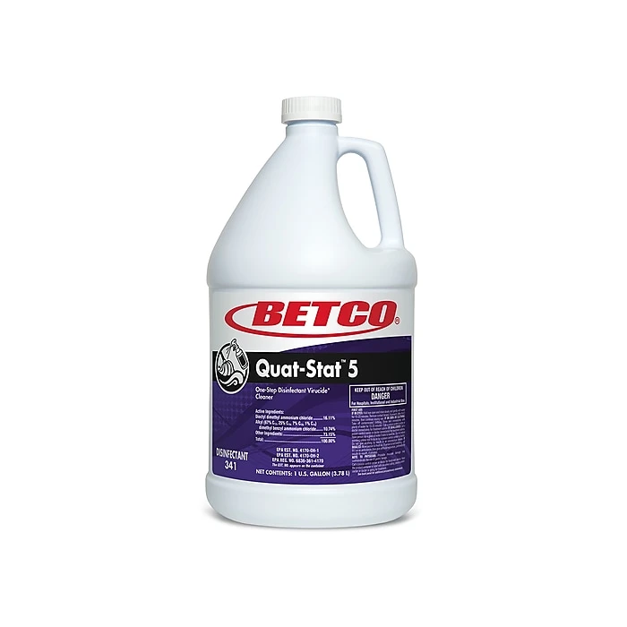 Betco Quat-Stat 5 provides hospital disinfection with a contact time of just 5 minutes. This registered one-step cleaner and disinfectant offers excellent cleaning performance on a wide variety of surfaces. It cleans, disinfects, and deodorizes.
