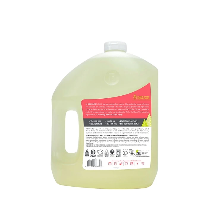Give your dishes, glasses, and silverware a sustainable, sparkling clean. A lot goes on inside the dishwasher, and detergent has a tough job to do. It must dissolve stuck-on food, eliminate spots, and be safe for the machine and the items inside. The Boulder Clean dishwasher gel succeeds on all counts. This dishwasher gel powers through even the toughest stuck-on food. It works hard for your family without the use of artificial fragrances or chlorine bleach for an everyday clean you’ll love and feel good about using in your home.