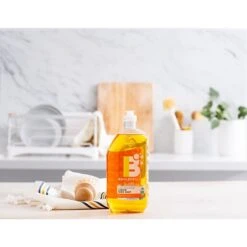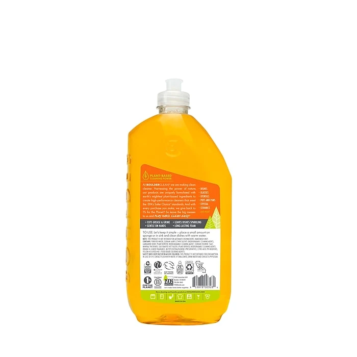 The Boulder Clean high-sudsing dish soap is tough on your dishes yet gentle on your hands. It fights grease and powers through tough dried-on food. The clean-rinse formula results in zero residue left behind. The Valencia orange fragrance will fill your kitchen with a bright scent of fresh fruit. Warning: you may find yourself doing the dishes with a smile.