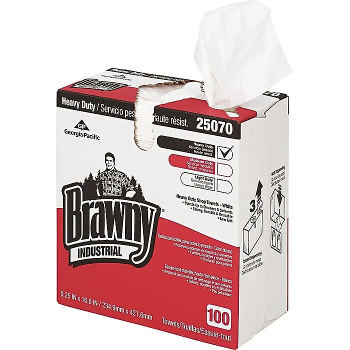 - Heavy-duty towels are suitable for wiping down industrial workspaces