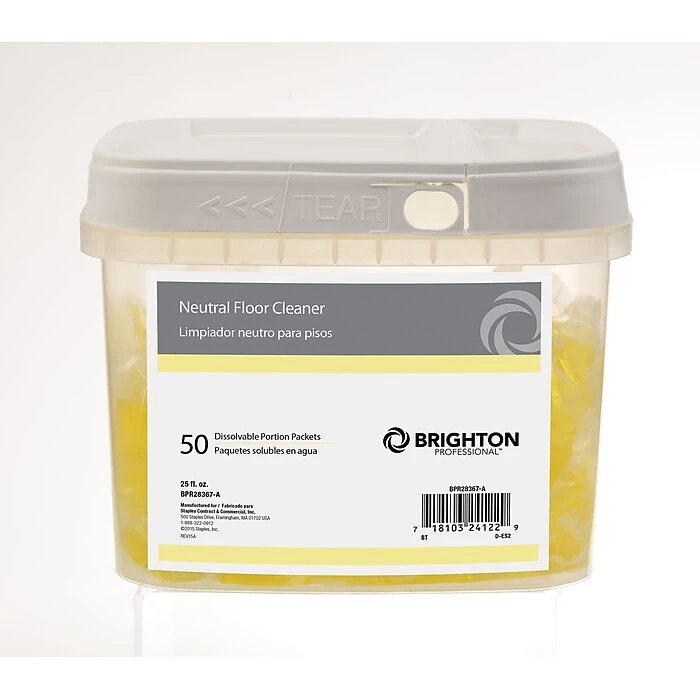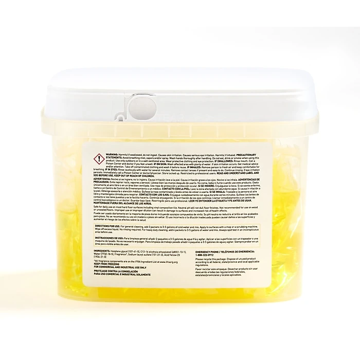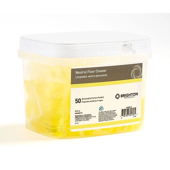 - Water-soluble, portion-controlled packets of liquid concentrate neutral floor cleaner