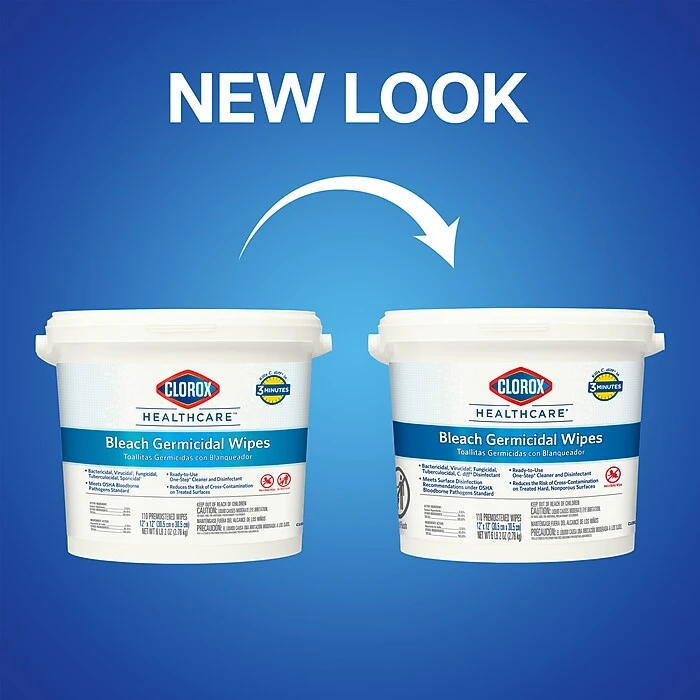 Healthcare professionals trust Clorox Healthcare® Bleach Germicidal Wipes to help them overcome infection control challenges in a constantly changing healthcare environment. Clorox Healthcare® Bleach Germicidal wipes are ready to use, 1 step cleaner containing a 1:10 bleach dilution to meet CDC and OSHA guidelines for disinfecting surfaces in healthcare settings. Designed for discharge disinfection, large areas. These terminal wipes are EPA registered to kill a total of 58 microorganisms, including HAI causing bacteria like MRSA and VRE in 30 seconds, outbreak causing viruses such as Influenza A and B viruses, Measles Virus and Norovirus in 1 minute and C. difficile (C. diff) spores, TB and fungi in 3 minutes. These wipes kill 99.9999% of C. difficile (C. diff) spores, according to the current EPA recommended testing standard (June 2014). And they meet EPA criteria for use against SARS-CoV-2, the virus that causes COVID-19. These wipes are engineered minimize residue and leave less visible residue on surfaces vs. competitor bleach wipes. These ready-to-use wipes are are formulated with an anticorrosion agent and are compatible with common healthcare surfaces including stainless steel, glass, plastic, porcelain, glazed ceramic, laminated surfaces and vinyl. Intended for use in Healthcare settings.