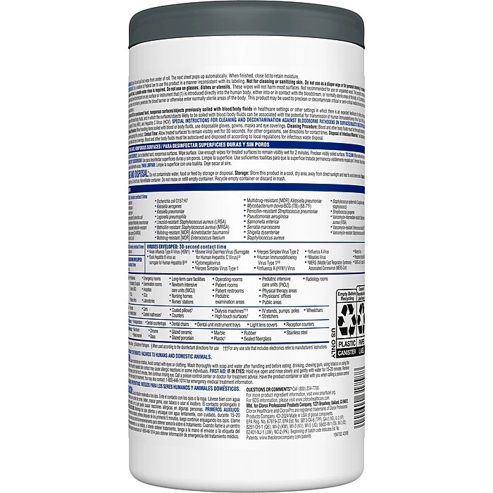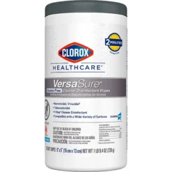 Clorox® Healthcare VersaSure Cleaner Disinfectant Wipes kill microorganisms quickly on a broad range of surfaces. These strong and durable alcohol-free wipes are a one-step solution to cleaning and disinfecting. VersaSure™ wipes are EPA-registered to kill pathogens on hard surfaces in as fast as 30 seconds for most bacteria and viruses. These disinfectant wipes meet EPA criteria for use against SARS-CoV-2, the virus that causes COVID-19. Designed for patient and staff comfort, these wipes are formulated with no harsh chemical odors, fumes, or added fragrances. Available in a variety of wipe sizes to fit a variety of cleaning needs. Intended for use in commercial settings.