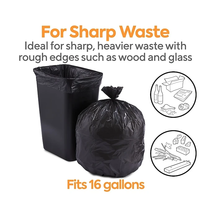 - These 12-16 gal. capacity super heavy strength bags ideal for all trash applications, including heavy industrial trash