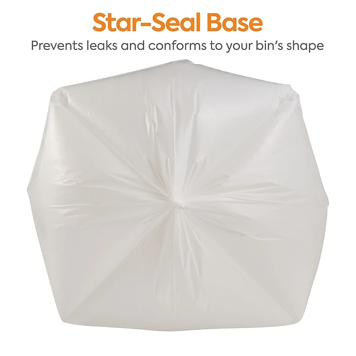 - The strong linear low-density polyethylene (LLDPE) lining on these can liners allows for easy transport without tears or ribbing, while a clear white design makes these bags can liners easily identifiable for added convenience