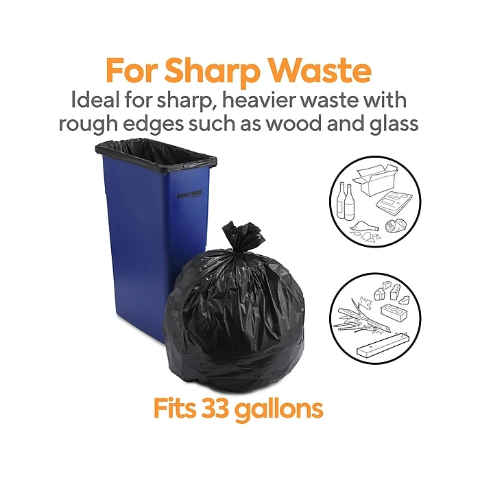 - These 30-33 gal. capacity extra heavy strength bags ideal for all trash applications, including heavy industrial trash