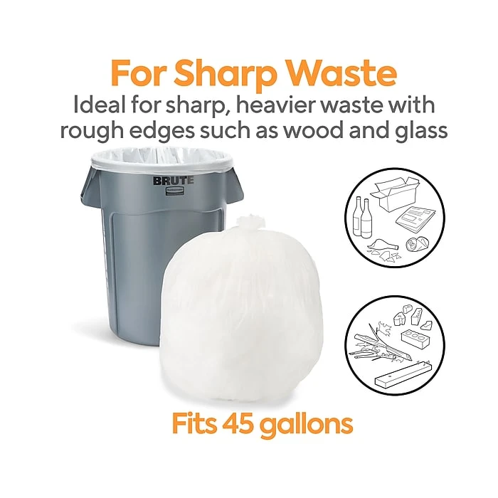 - These 40-45 gal. capacity medium strength bags ideal for all trash applications, including heavy industrial trash