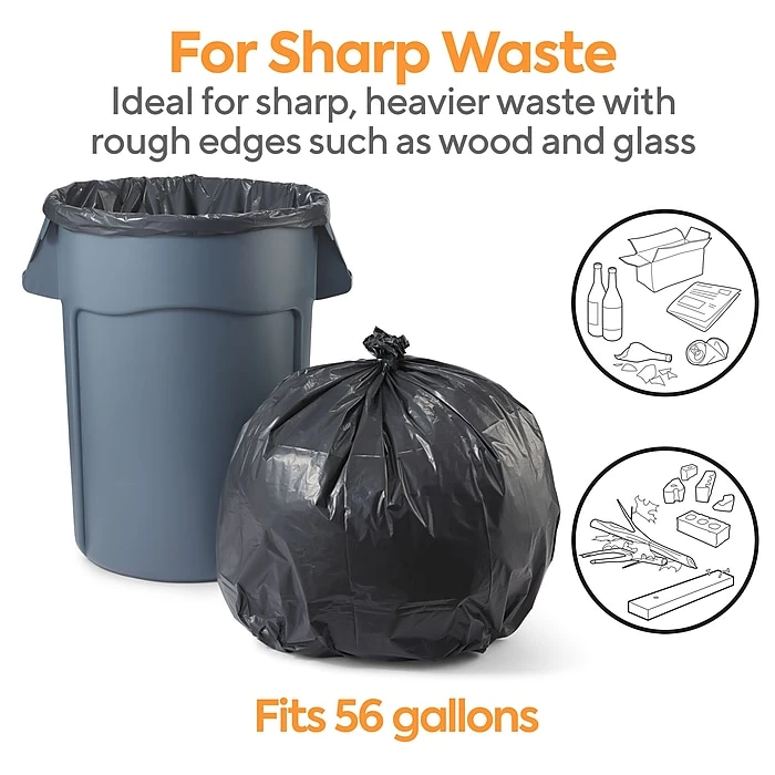 - These 50-56 gal. capacity industrial trash bags with extra heavy strength are ideal for all trash applications, including heavy industrial trash