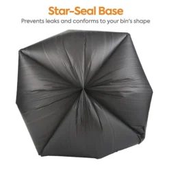 Employ simple storage and cleanup with these high-density trash bags. Strong and durable, these bags keep rubbish and wet objects inside the liner. A star-sealed bottom conforms to the bin’s shape and settles the contents, so you can slip the bag out of the can without ruptures or leaks. These Coastwide Professional™ trash bags feature a dual opening for horizontal or vertical storage and access.
