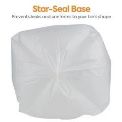 Keep offices and public spaces clear of refuse with these natural trash bags. The star-sealed bottoms help prevent leakage, which is perfect for removing wet trash from breakrooms and commercial spaces. Each carrier holds up to 56 gallons to easily handle large disposal tasks, while the translucent material provides content-viewing without manually rummaging through. With 150 items per carton, these Coastwide Professional™ trash bags are ideal for businesses that go through lots of waste.