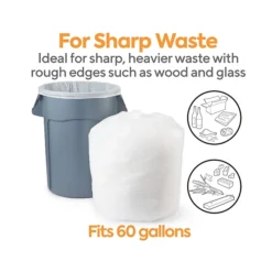 - These 55-60 gal. capacity medium strength bags are good for industrial waste, including sharp, heavy, and wet objects