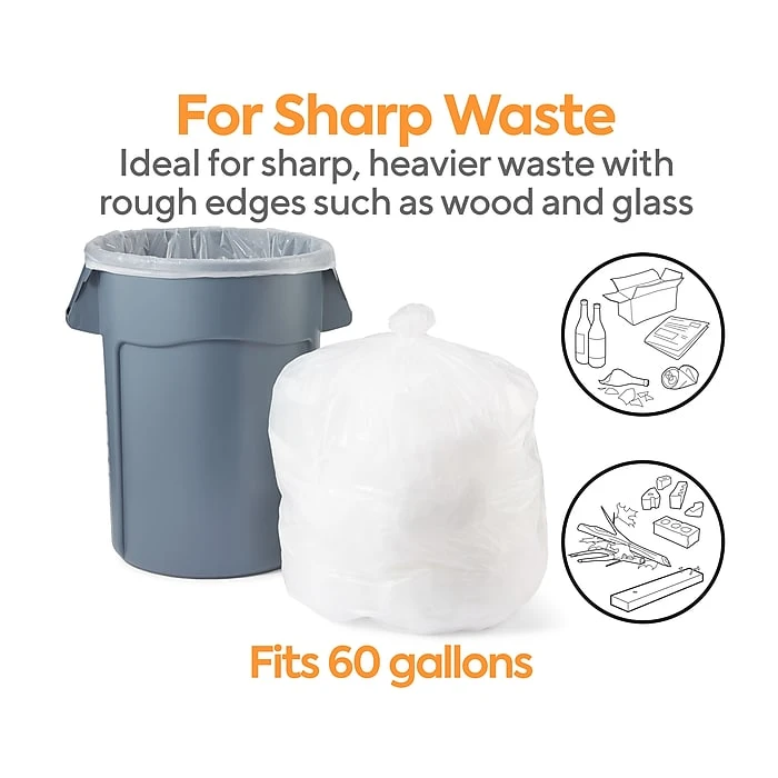 - These 55-60 gal. capacity super heavy strength bags ideal for all trash applications, including heavy industrial trash