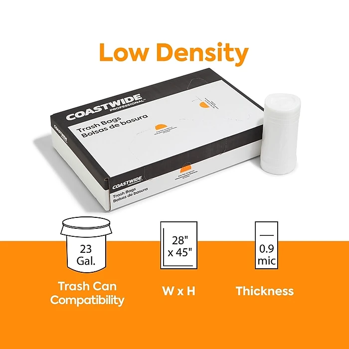 - Low-density 0.9 mil thick bags keeps heavy and wet trash and prevent from stretching holes in the bag