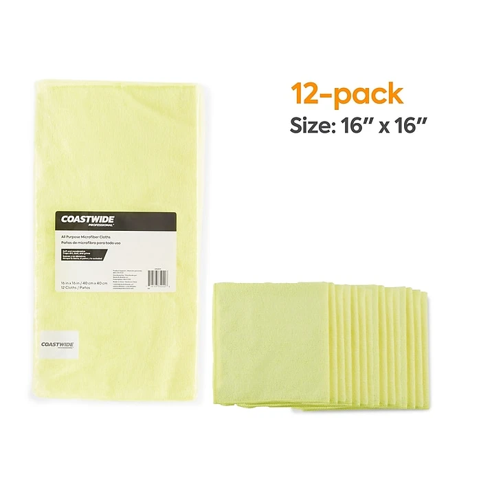 Wipe away any dust or dirt quickly and efficiently with these Coastwide Professionalâ„¢ microfiber wipes. Feature split fibers that allow the cloth to grab and hold dirt more effectively, while also absorbing liquid. The built-in extra absorbency makes it possible to use each wipe to wipe up wet and dry messes more than once, as it can absorb six times its own weight. This Coastwide Professionalâ„¢ microfiber cloth will work perfectly on any surfaces.