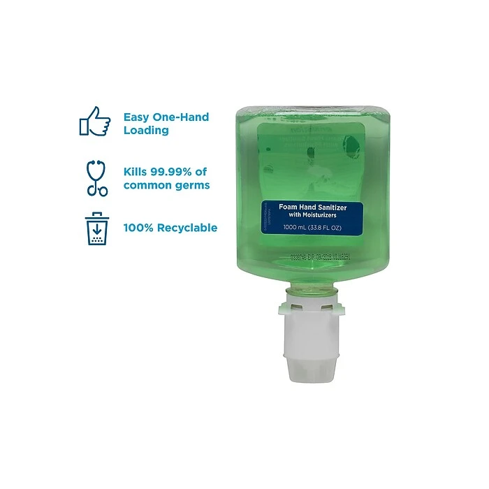 Kill germs while preventing hands from drying out with this case of two fragrance-free foam hand sanitizer. Compatible with enMotion Gen2 touchless sanitizer dispensers, these refills install quickly, and their enhanced formula kills 99.99% of common germs. This enMotion fragrance-free hand sanitizer is made with aloe and moisturizers to keep hands soft.