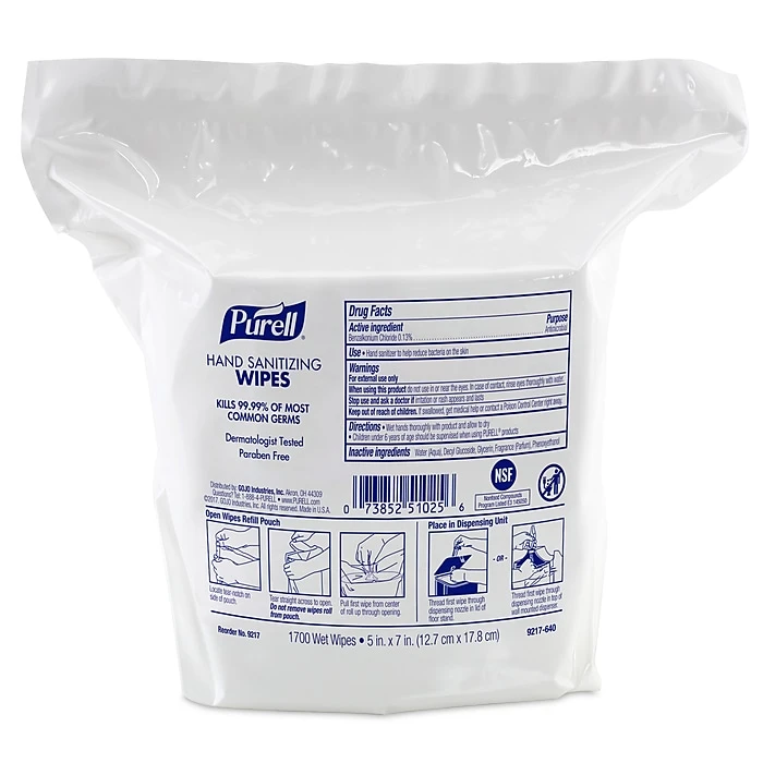 - 1700 count refill for PURELL® high capacity wipes dispensers