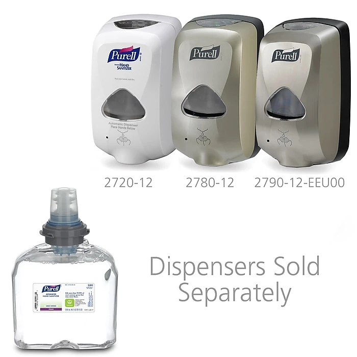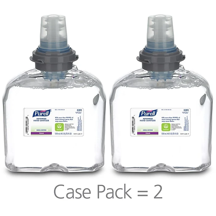 PURELL Advanced Green Certified Hand Sanitizer Foam works in a variety of dispensers for reliability. These dispensers deliver precise amounts of sanitizer for economy and inventory control. Easy replacement of refill containers reduces maintenance costs throughout your building. Wall-mounted dispensers allow for convenient placement in high-traffic or communal areas in your building.Kills up to 99.99 percent of most common germs that can cause illness with a formulation that includes 70 percent ethanol. Germs can live on doorknobs, phones, communal electronic equipment, and break room surfaces, making it important to sanitize hands throughout the day.Meet your sustainability goals thanks to EcoLogo certification and USDA BioPreferred program certification. This means PURELL TFX Advanced Green Certified Hand Sanitizer Foam meets environmental standards based on its raw materials that have less environmental impact, a manufacturing process that keeps environmental hazards to a minimum, and an increase in recyclability of the containers.