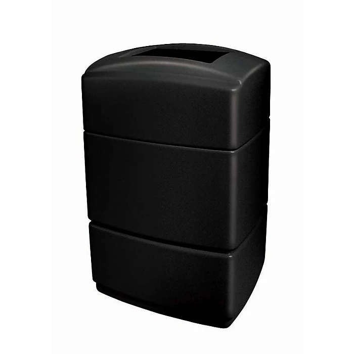 The black, PolyTec Series 40-gallon rectangular waste container has a unique, rectangle design, a large capacity, and convenient ease-of-use. The patented Grab Bag system secures the trash bag in place for a cleaner appearance with a decreased chance of the lid blowing off. These heavy-duty waste containers are designed to withstand the harshest environments as well as offer easy maintenance. Environmentally-friendly containers are molded from long-lasting recycled polyethylene. They won’t rust, dent, or chip.