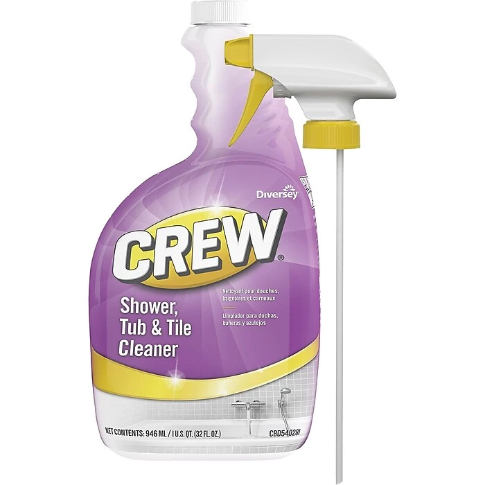 Crew® Shower, Tub & Tile Cleaner is an all-purpose cleaner commonly used in areas where water is present, such as showers, bath tubs, toilets, urinals and sinks. This non-abrasive acidic cleaner makes cleaning faster and easier. Formula is brilliant red with a fresh, clean scent.