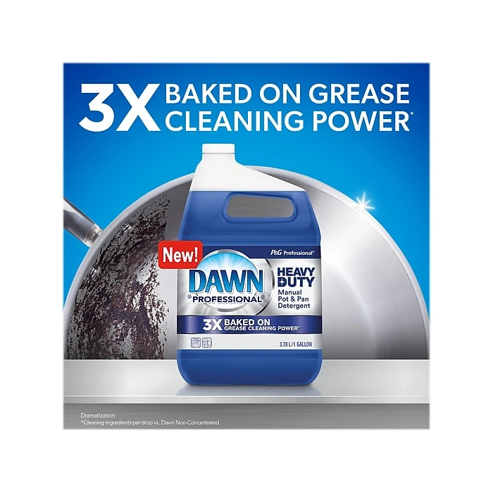 Experience three times the baked-on grease cleaning power with Dawn Professional’s Heavy Duty manual pot and pan dish detergent, the advanced and powerful Dawn Professional formula. Made for your toughest jobs, this heavy-duty dish soap saves you time and effort with 50% less scrubbing from active ingredients that do more of the work for you. This means less time presoaking, less time scrubbing, and more time back to you.