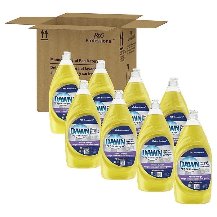 Dawn manual pot and pan detergent is a highly concentrated liquid dish soap that has grease-fighting power for tough jobs at your business. This highly concentrated liquid dish soap is specially formulated to help remove greasy food soils from pots, pans and utensils. Dawn dish detergent can work as an all-purpose cleaner for a variety of task areas, including three-compartment sinks (wash sink), counter tops, dining, cooler doors, windows (outside and inside), portable equipment, trash receptacles, coffeemakers, drive-thru menu boards, and tile walls.