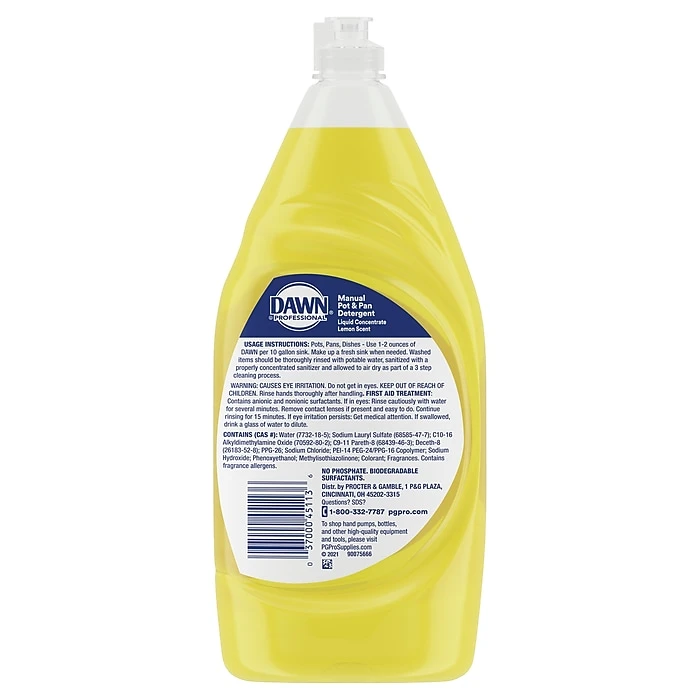 - Dawn Professional dishwashing detergent with long-lasting suds cleans 58% more greasy pots and pans per sink* (*vs. Dawn non-concentrated)