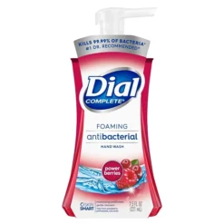 Promote a hygienic environment by placing this antibacterial hand wash near restroom sinks. A germ-killing agent destroys nearly all common microbes found around the office that cause illness and disease, and the foaming action works to moisturize the hands. Coconut water leaves hands with a refreshing scent. This 7.5-ounce bottle of Dial Complete foaming hand wash features a convenient pump dispenser, which helps the soap go directly into the hands, instead of on the counter.