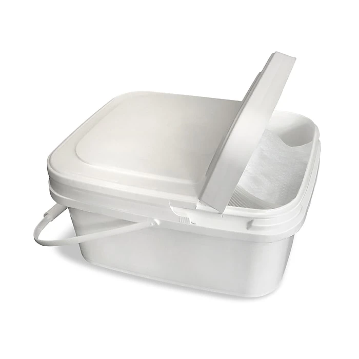 - Charging bucket with lid can be used with a variety of cleaners, disinfectants, and sanitizers paired with dry wipes