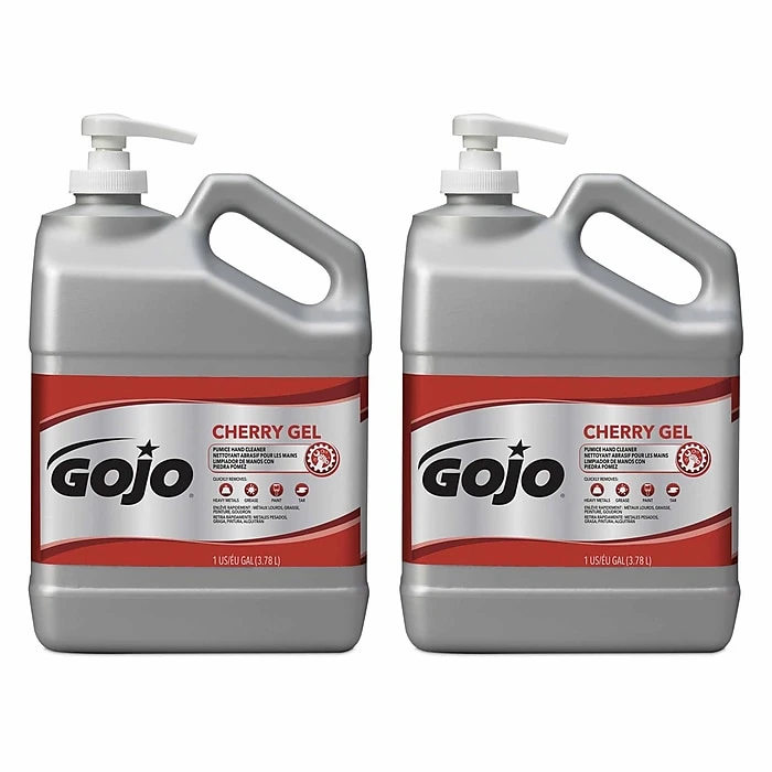 - Case Includes: 2 – one gallon GOJO® Cherry Gel Pumice Hand Cleaner Pump Bottles