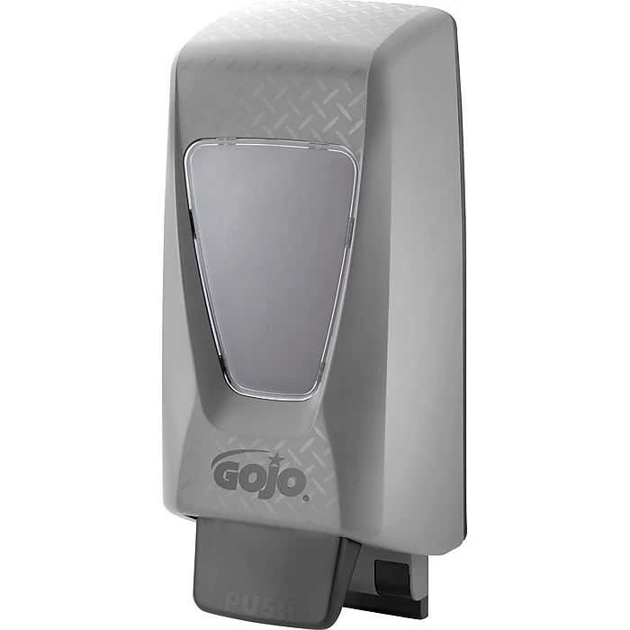Gojo PRO 2000 High impact ABS plastic hand soap dispenser in gray color features new modern design with diamond-plate etching. Hand soap is an ideal choice for locker rooms, production, tool crib/rooms, clean-up sinks and maintenance areas.