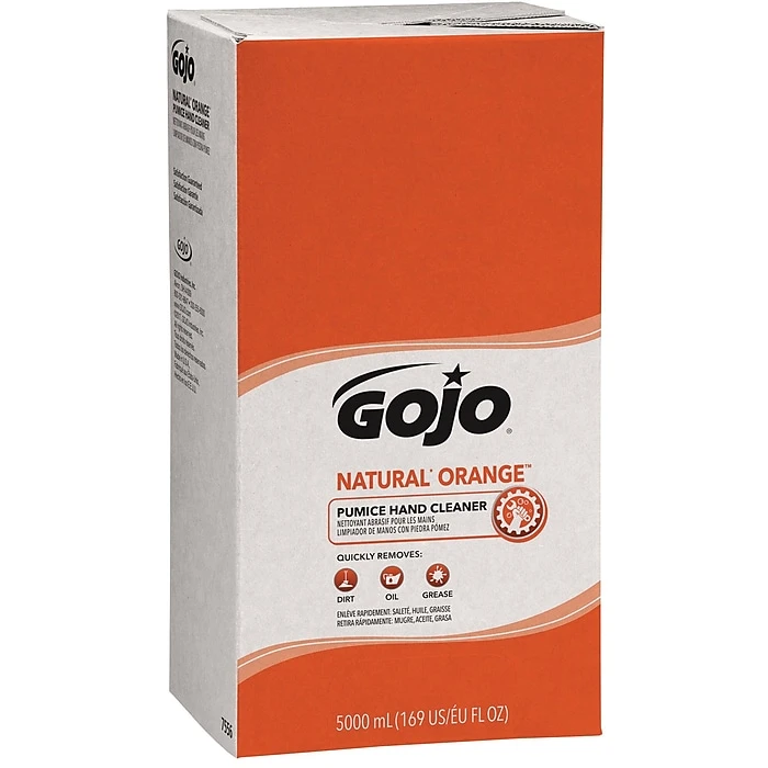 GOJO® PRO 5000 ™ Hand Cleaner of 5000 ml capacity contains pumice scrubbing particles for an effective hand cleanup. Hand cleaner of orange citrus scent offers a dispensing valve to ensure no leaks or clogs are caused.