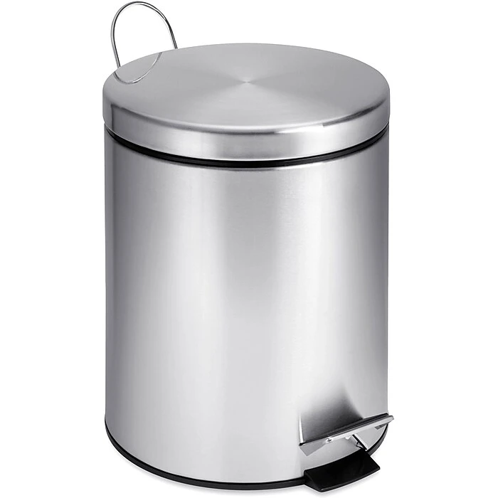 Aesthetically, this 1.32 gallon trash can’s smooth stainless steel lends a simplicity and cleanliness that’s timeless.
