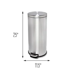 Honey-Can-Do Steel Indoor Round Step Can Trash Can With Hinged Lid, 7.92 Gallon, Silver (TRS-09074)