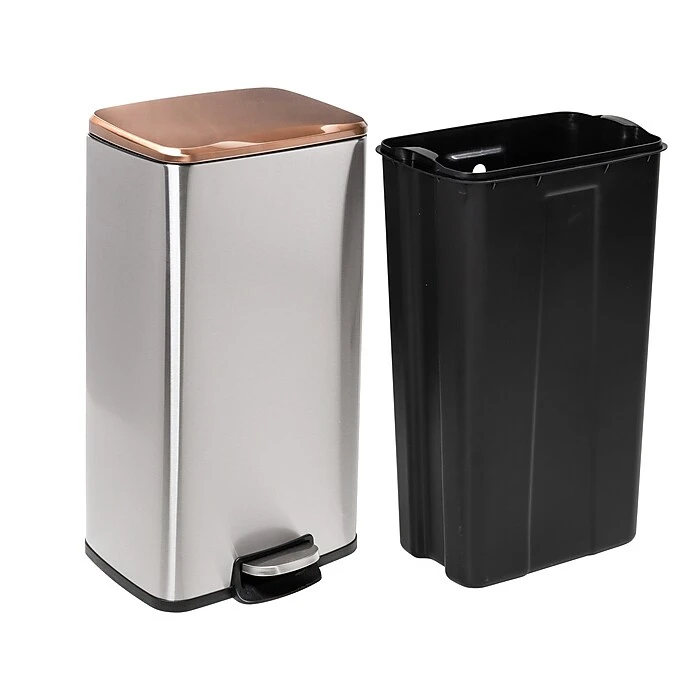 Honey-Can-Do Steel Indoor Trash Can Set With Hinged Lid, 7.92 & 1.32 Gallon, Rose Gold (TRS-09325)