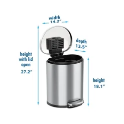 - Semiround step trash can ensures clean and litter-free space and provides hands-free operation