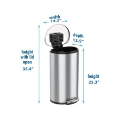- Semiround step trash can ensures clean and litter-free space and provides hands-free operation