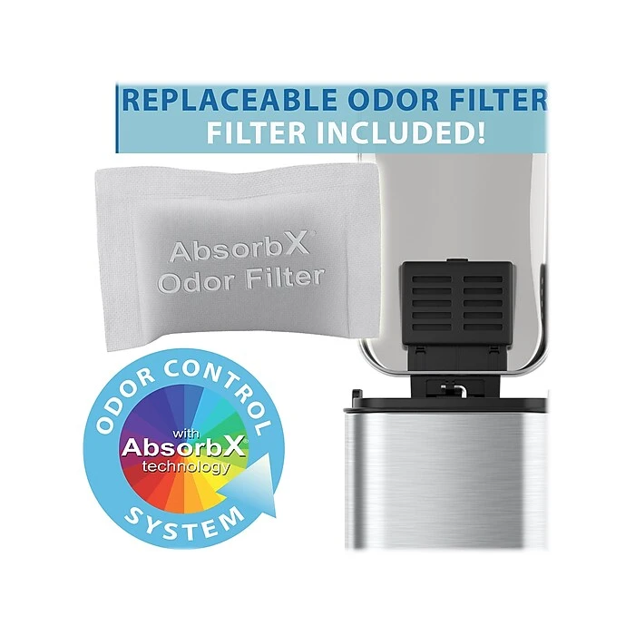 This iTouchless SoftStep slim, space-saving trash can fits perfectly next to the toilet, under the desk, and in other tight spots. The can is made of elegant fingerprint-proof stainless steel and comes with an AbsorbX natural carbon odor filter.