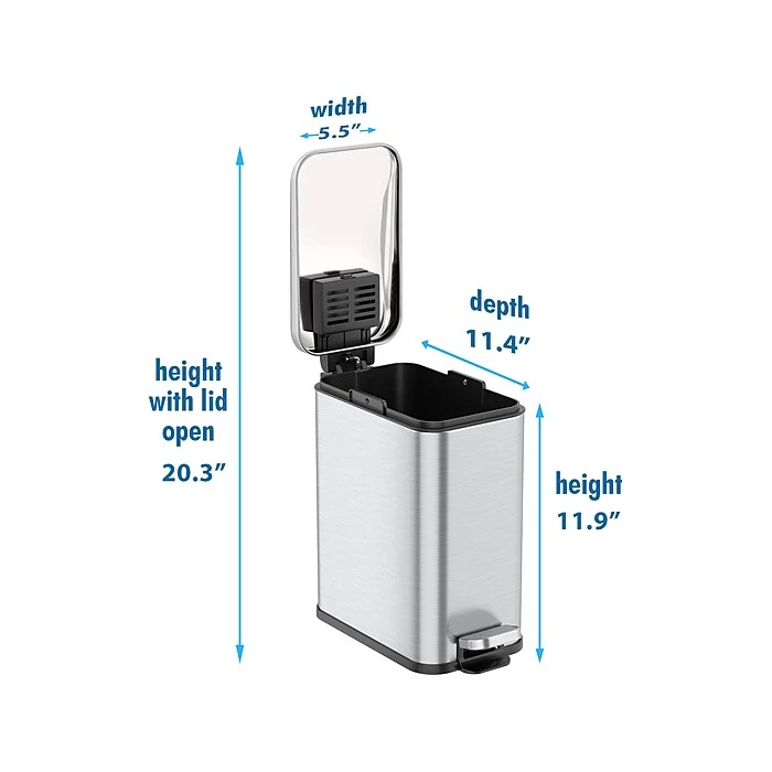 - Step trash can ensures clean and litter-free space and provides hands-free operation
