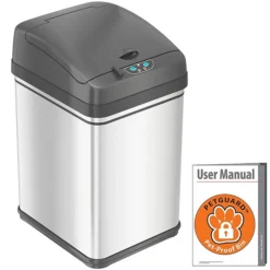 - Sensor-activated, automatic lid. High-quality ABS plastic. Powered by four C size batteries (not included) or AC Adapter (sold separately).