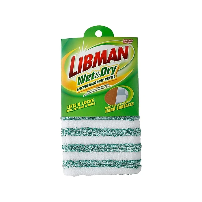 Libman Wet & Dry mop pad is a reusable and machine washable microfiber cleaning pad. Use it wet or dry.
